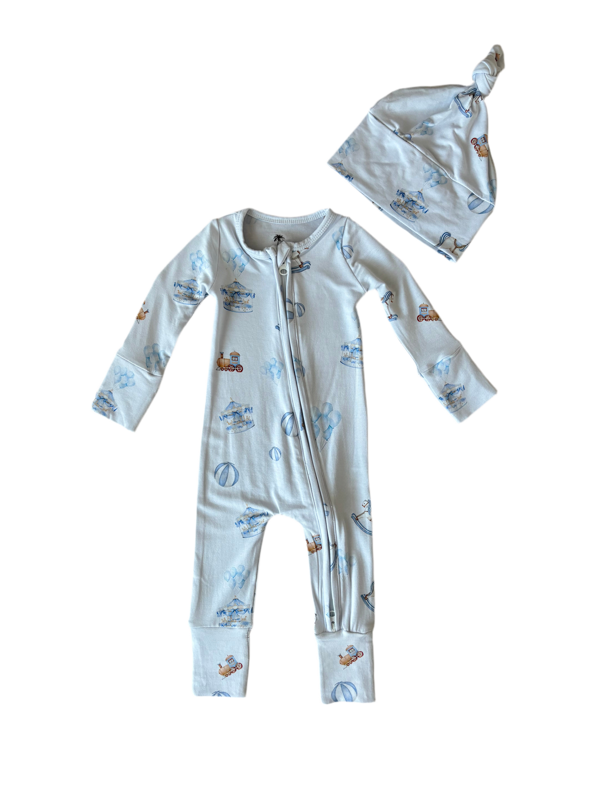 The growsuit features a two way zip for easy access to nappy changes, hand and feet fold overs, and a zipper fold to keep the skin protected.